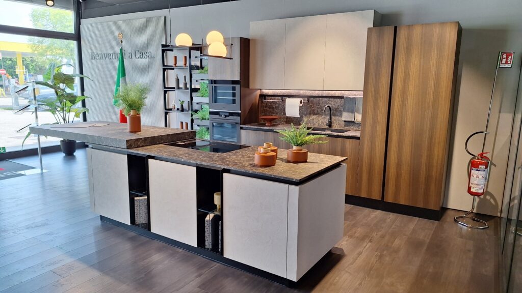 Non perdere l’occasione di vederla dal vivo! Dal 1° luglio 2025 Febal Casa Treviso cambia gestione e diventa parte del Gruppo Visma Arredo. Per questo motivo, ci sarà una grande svendita di cucine e mobili per la casa, incluse cucine moderne come questa, con sconti fino al 70%. È un’opportunità limitata nel tempo per la merce esposta, che può essere adattata alle tue esigenze e consegnata anche nel 2026.