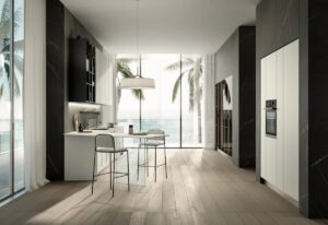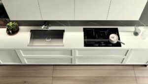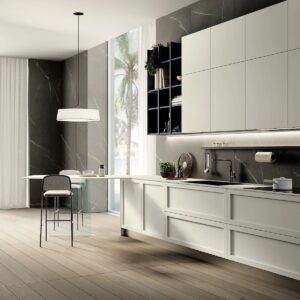Un programma completo come quello di Febal Casa offre una gamma molto ampia di colori e di ante: questo permette di progettare e realizzare cucine moderne con un gusto anche sobrio e contemporaneo come nel caso della cucina lineare Modula telaio